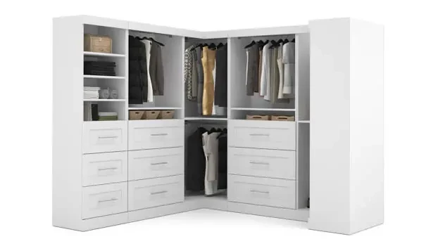 • Each corner unit has 1 shelf and 2 poles to hang clothes