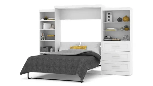 Bestar Office Furniture 126in W Queen Murphy Wall Bed and 2 Storage Units with Drawers