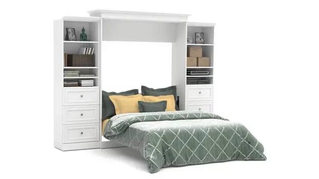 Bestar Office Furniture 115in W Queen Murphy Bed and 2 Closet Organizers with Drawers