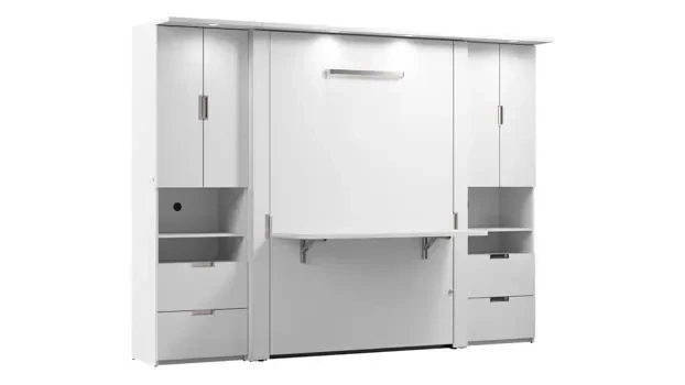 Bestar Office Furniture 107in W Full Murphy Bed with Desk and 2 Storage Cabinets