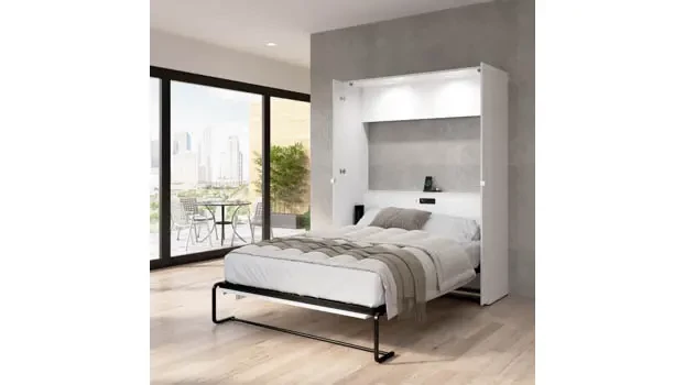 With its scratch-resistant high-gloss finish, sleek pulls, and built-in dimmable LED lights, the wall bed offers an chic, contemporary look that’s sure to win you over.